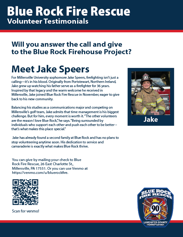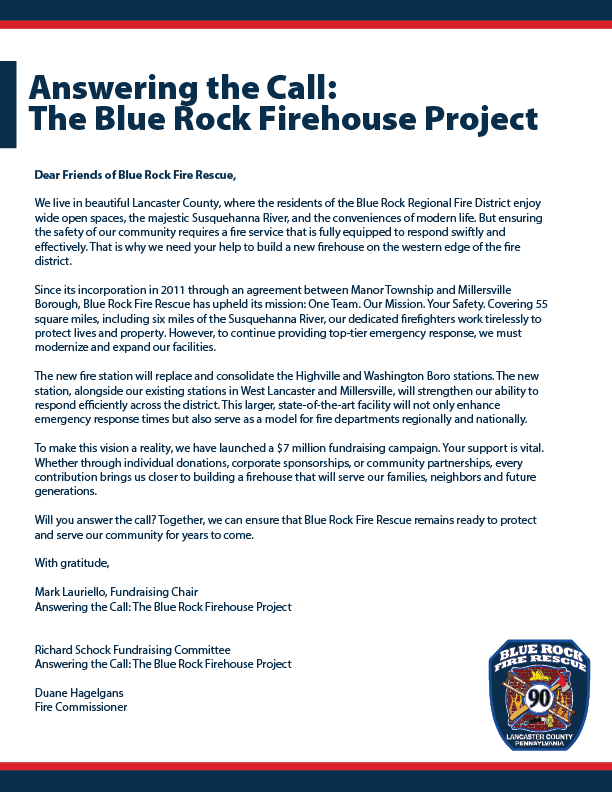 I have been working to create marketing materials to support Blue Rock Fire Rescue efforts of raising $10 million to build a new fire station as well as recruit student volunteers.