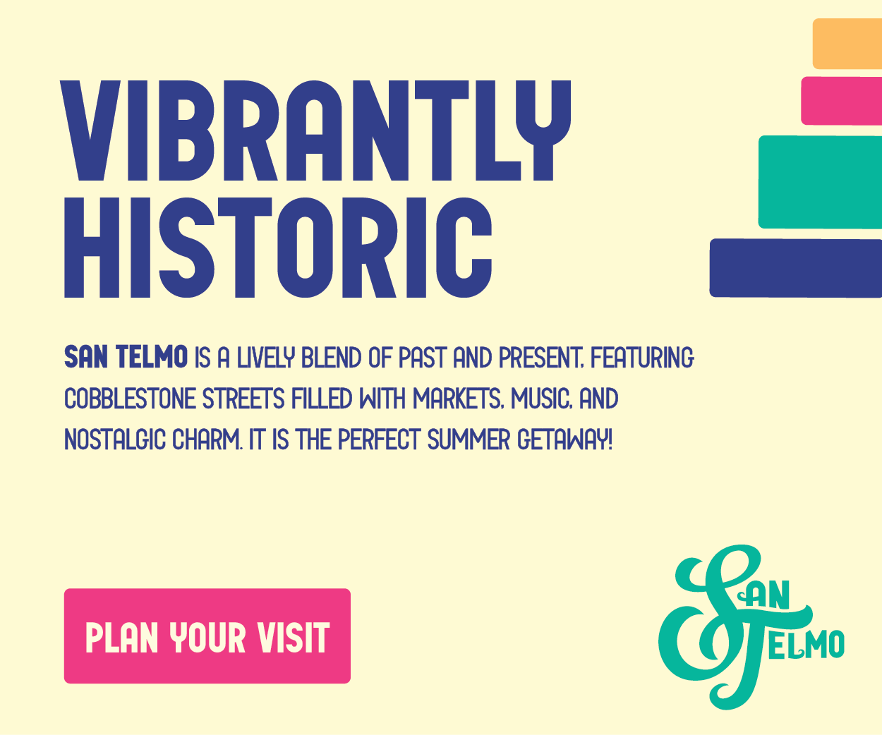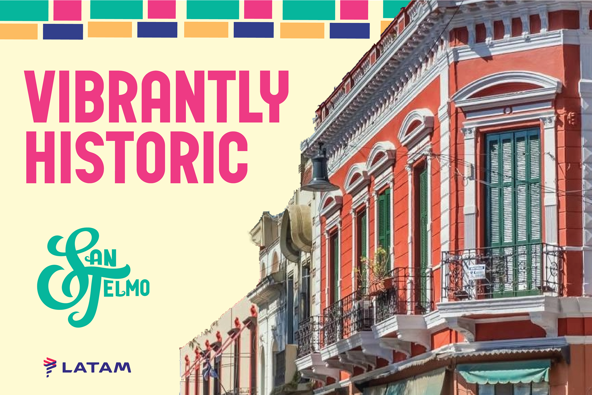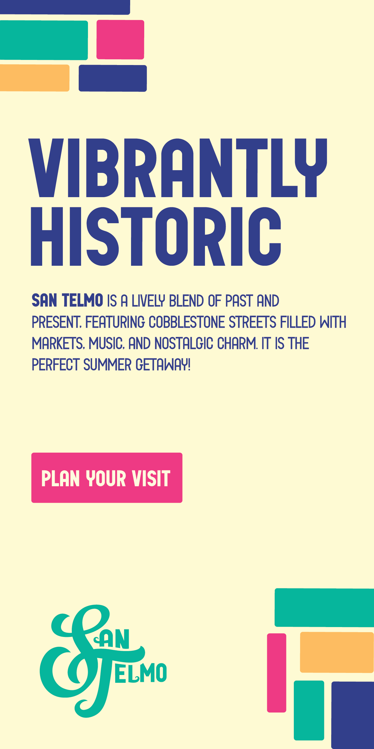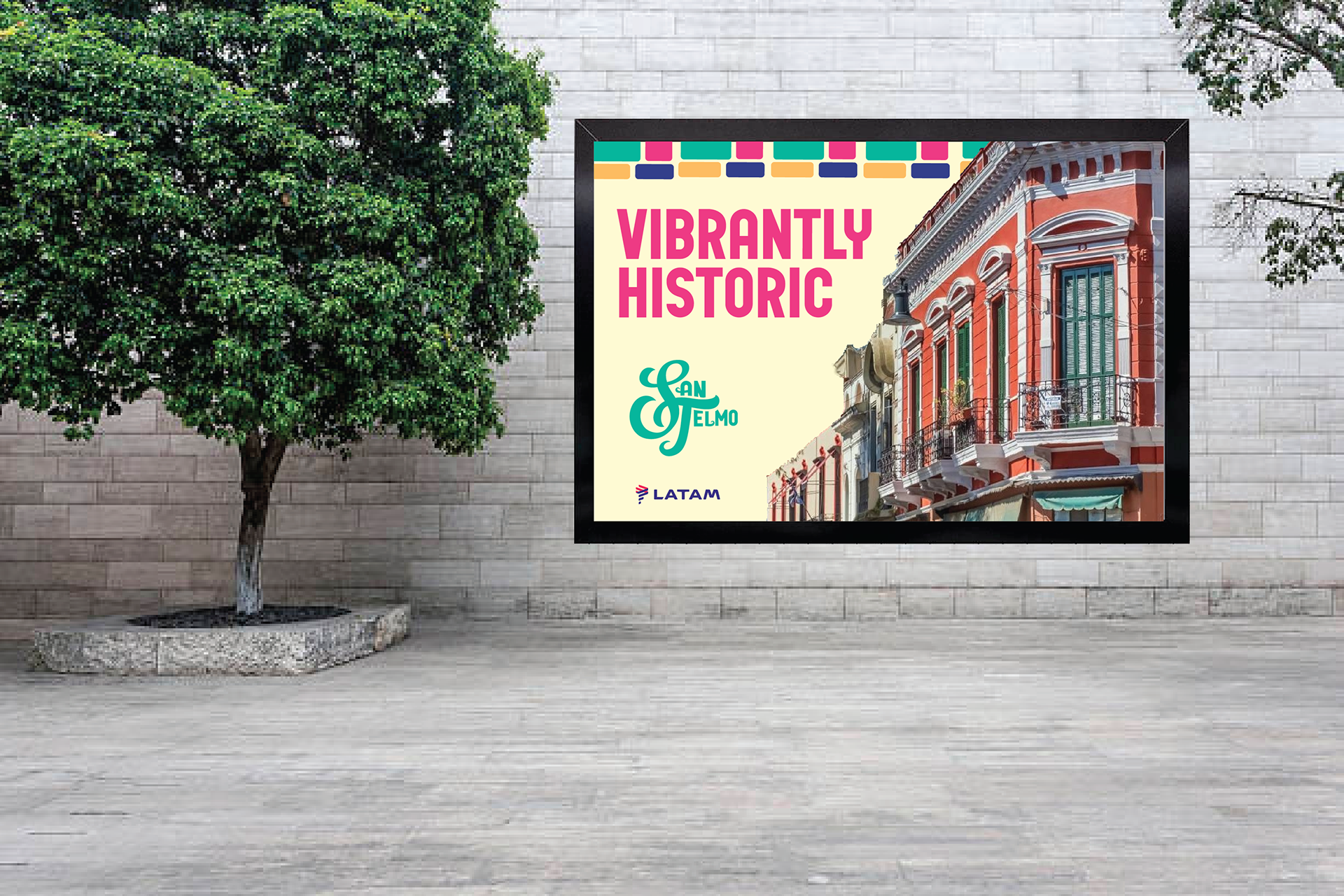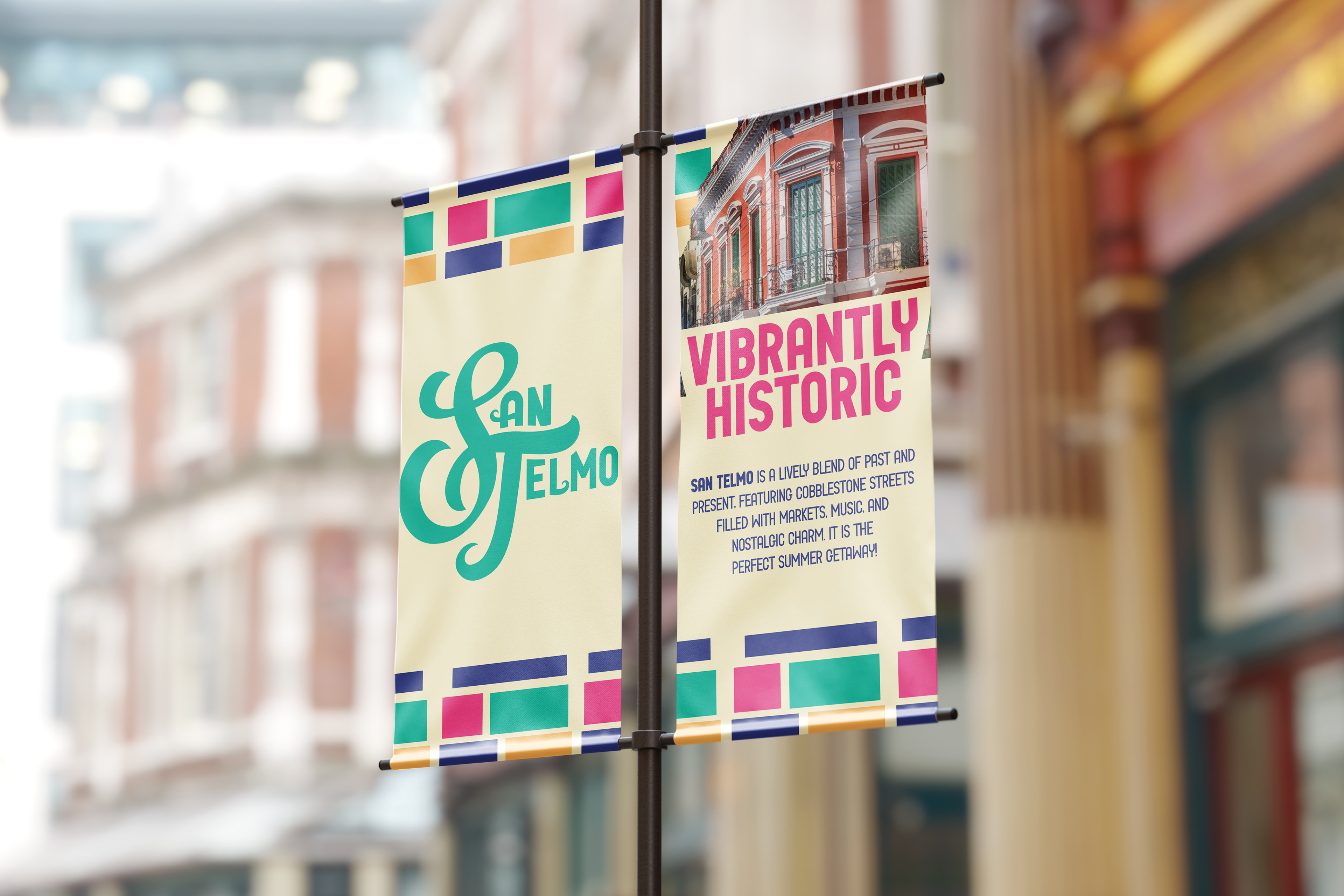 This project aims to rebrand San Telmo, Argentina. The design aims to bring vibrance and livelihood to a historic city known for its cobblestone streets.