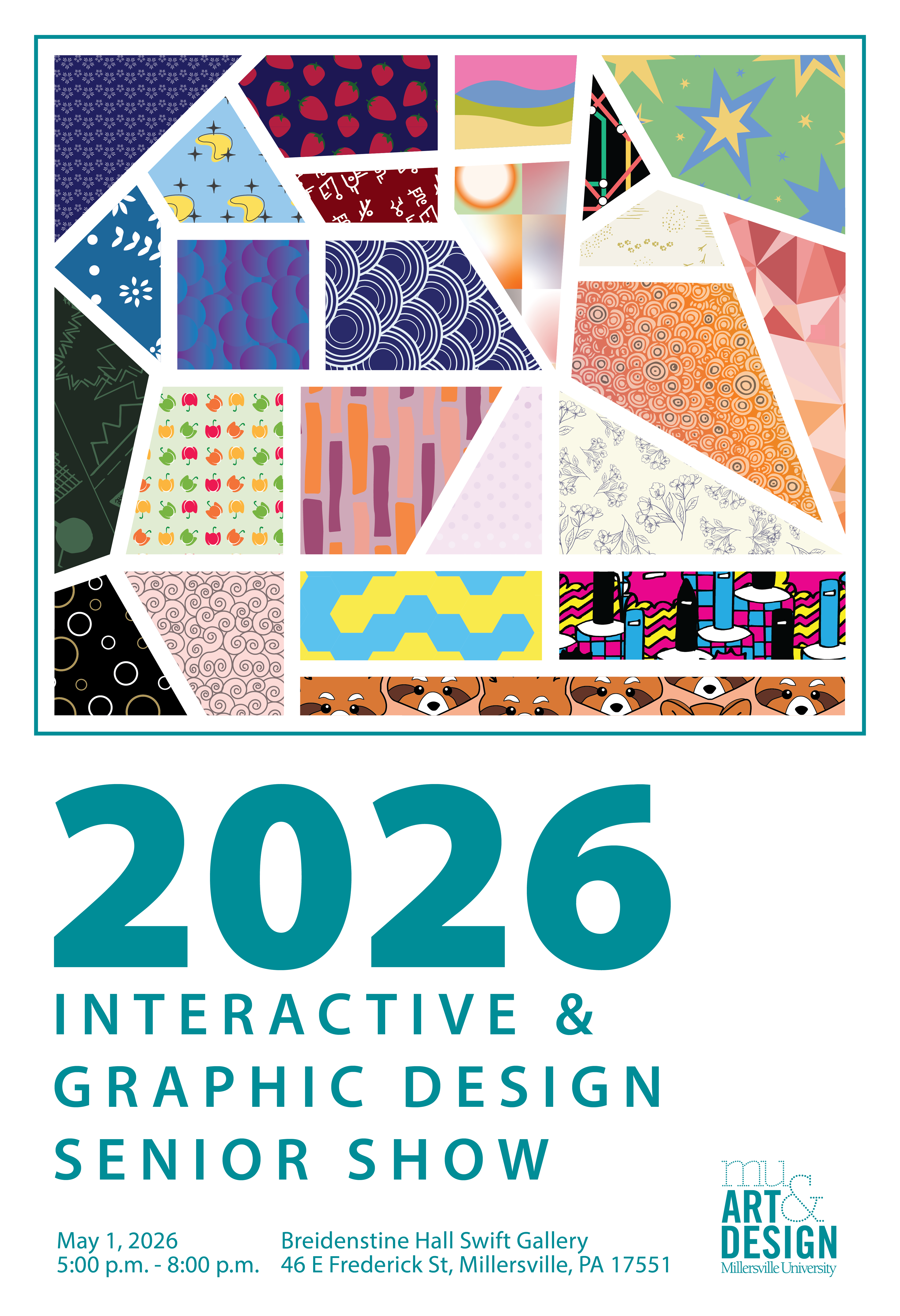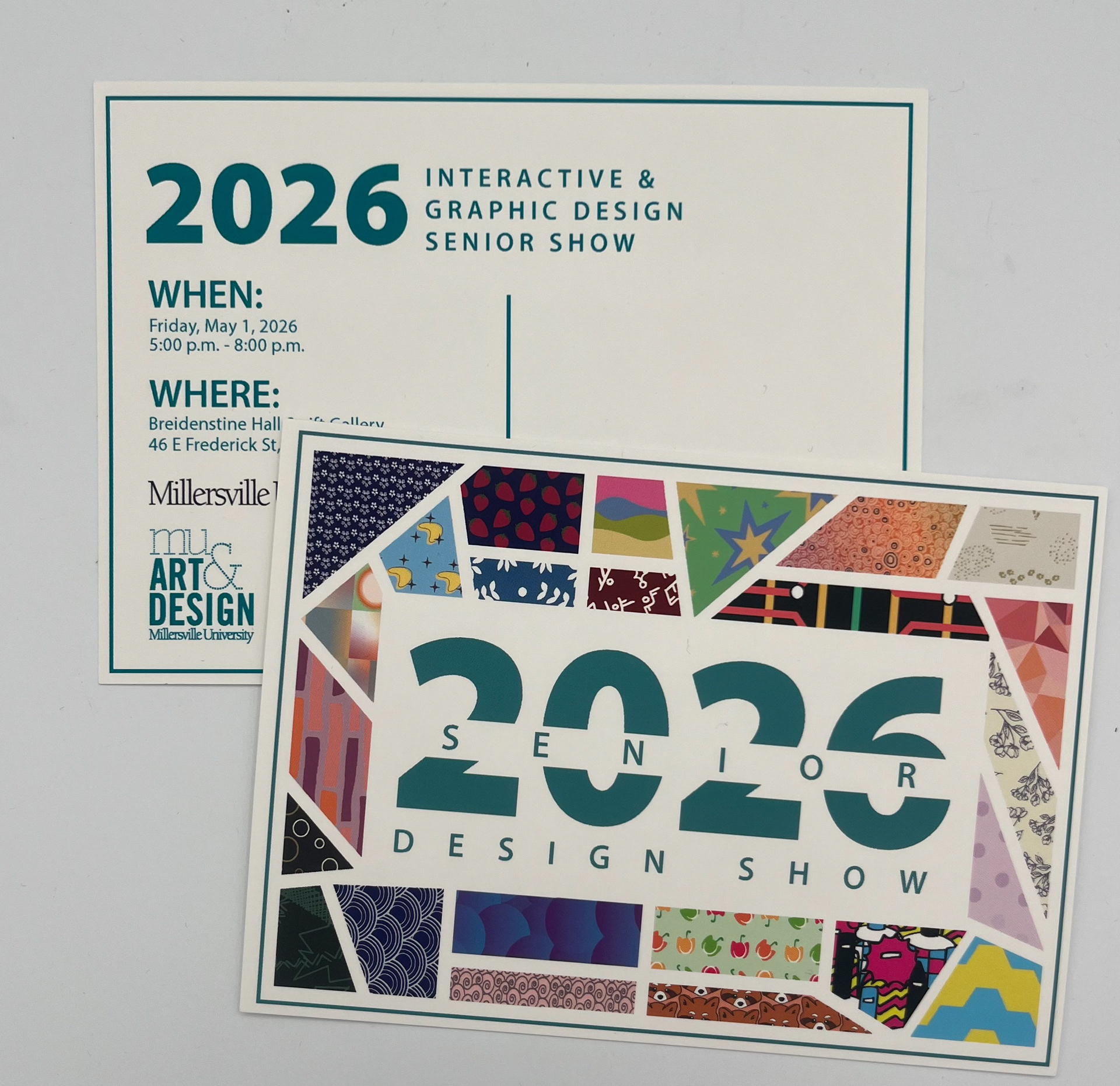 I had the privilege of being chosen to create the marketing materials for the 2026 Senior Interactive and Graphic Design Show. The postcard is meant to illustrates how all of the seniors come together to represent the 2026 class, while also still respecting and promoting our unique styles and approaches.
